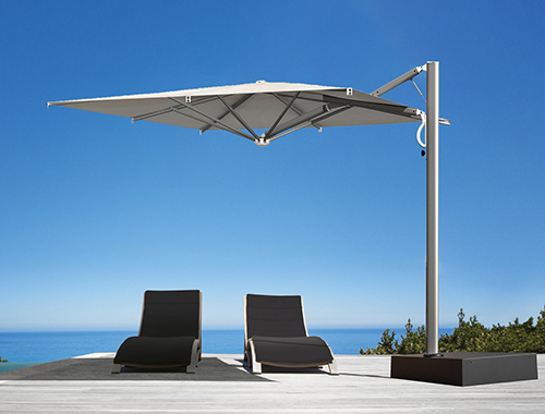 Эта модель 2017 года - результат технологического прорыва: газовый поршень обеспечивает плавное и бесшумное открывание и закрывание зонта всего одним нажатием. Благодаря боковой опоре и компактному механизму, зонт аккуратно придвигается к стойке и не нависает над мебелью, что особенно удобно в условиях ограниченного пространства. Корпус выполнен из алюминия, тент - из водоотталкивающего акрила плотностью 350 г/м². Цветовая гамма (графит + слоновая кость) легко вписывается в любое современное пространство.