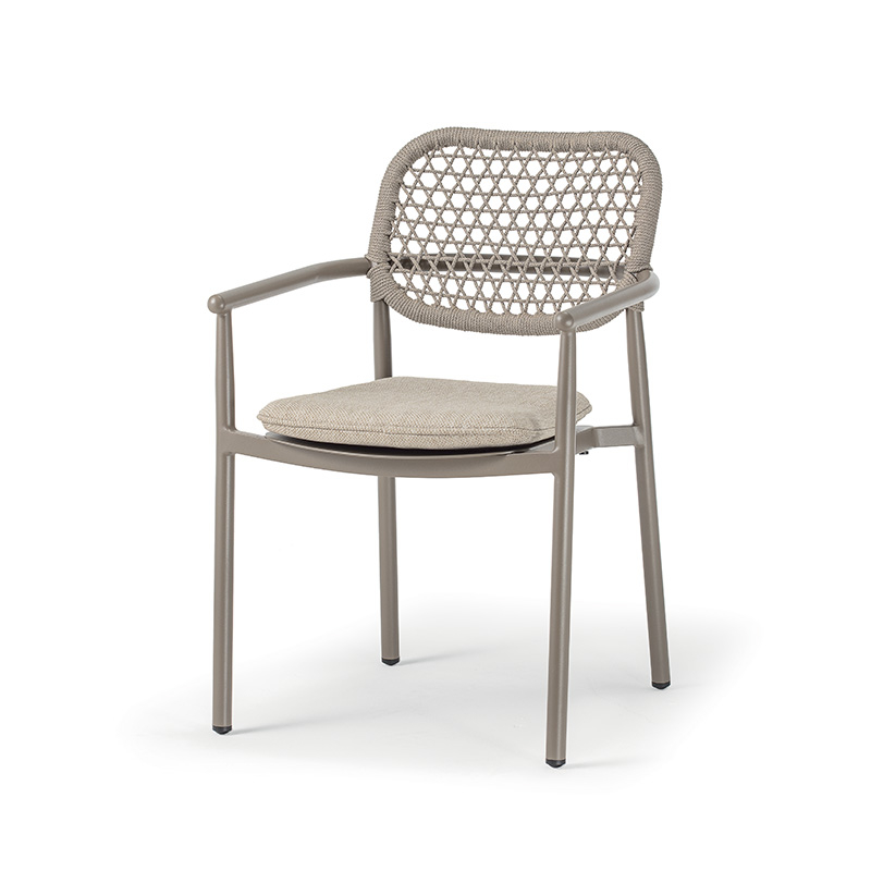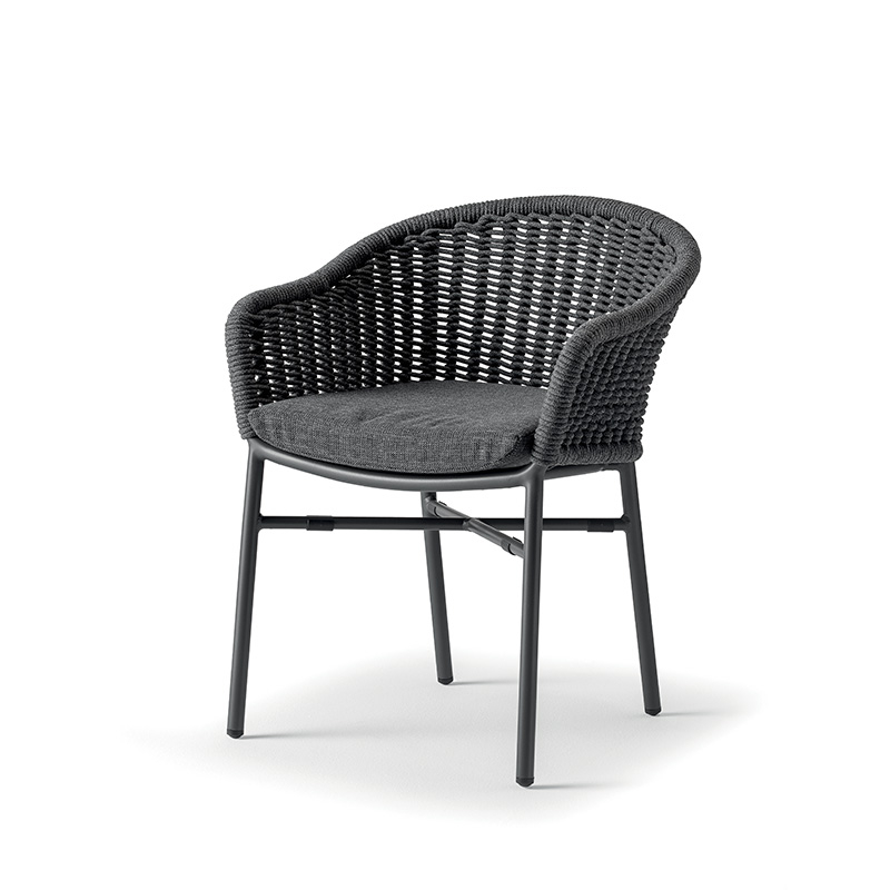 Кресло Berlin - модель на легкой, но прочной алюминиевой раме с изящным плетением спинки из акрилового каната. Подушка из олефина не боится влаги и солнца, а возможность штабелирования делает хранение максимально удобным. Универсальное решение для интерьера и открытых террас.