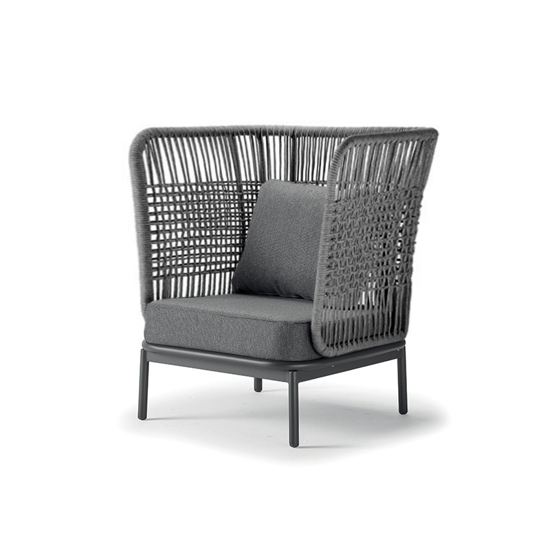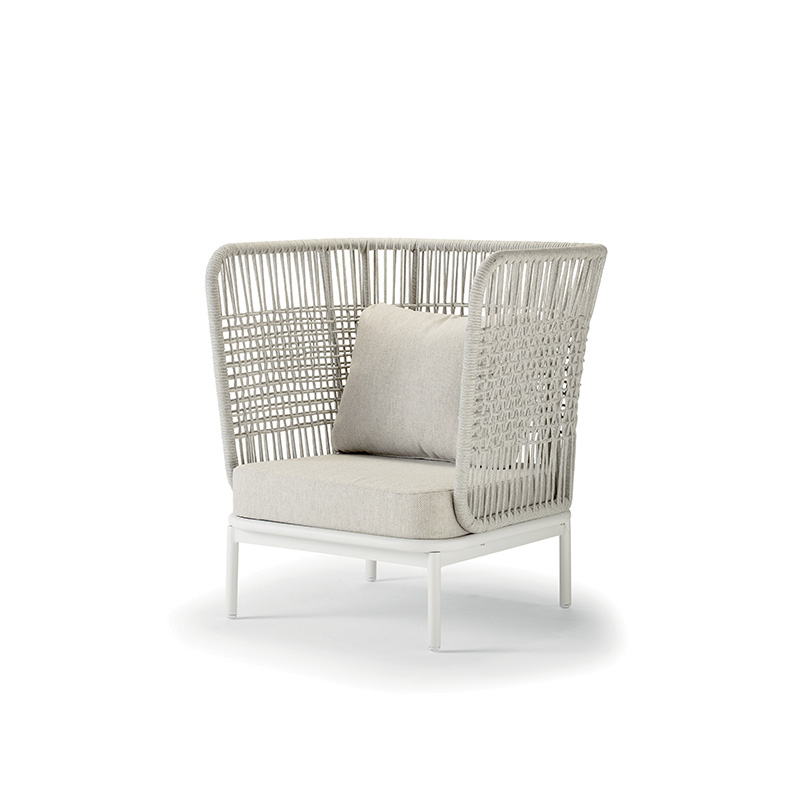 Лаунж-кресло Yolk - модель с эффектом "обволакивающего" комфорта благодаря высокой эргономичной спинке. Алюминиевый каркас оплетен прочным полиэстеровым канатом (роуп), а глубокие подушки из олефина обеспечивают максимальное расслабление. Создано для размеренного отдыха в зоне патио или у бассейна.