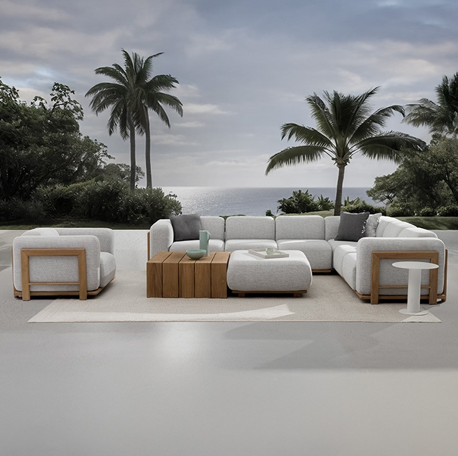 Модульная коллекция Rule Teak - гармония природного тика и технологичных материалов. Прочный каркас скрывает легкий алюминий, а объемные подушки из быстросохнущего пеноматериала и олефина не боятся влаги. Свобода комбинирования модулей позволяет создать свой идеальный островок спокойствия как в доме, так и под открытым небом.