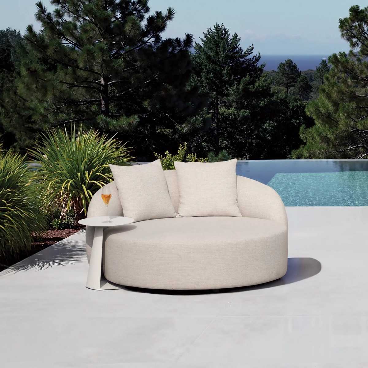 Мягкий лежак Geometry - минималистичный шезлонг для максимального релакса. Алюминиевое основание дополнено матрасом из быстросохнущего поролона в чехле из влагостойкого олефина. Продуманная форма и подушка позволяют принять самое удобное положение для отдыха у бассейна или в саду.