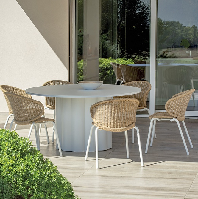 Стол Barbuda - эффектная круглая модель с уникальным многоцилиндровым основанием из алюминия. Конструкция отличается легким весом, абсолютной устойчивостью к коррозии и простотой ухода. Лаконичный дизайн станет стильным акцентом в ресторане, лобби отеля или на террасе.