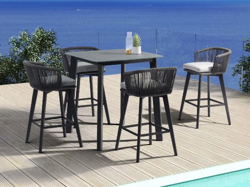 Плетение из роупа является отличительным элементом барных кресел фабрики Felicita, создавая привлекательную и текстурированную отделку, охватывающую металлический каркас. Удобные подлокотники и спинка с комфортом обнимают сидящего, одаривая чувством уюта и защищенности. Кресла подходят для обстановки летней веранды, бара или кухни в частном доме, прекрасно дополнят барную зону, станут украшением летней площадки кафе или ресторана. Комфортные диваны в комплекте с креслами идеально подходят для обстановки лаунж зоны на открытом пространстве.