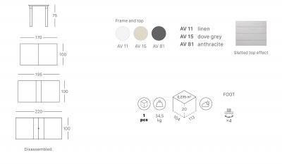 Per 3 с реечной столешницей из технополимера и алюминиевыми ножками с покрытием может быть увеличен в длину для столовой зоны на открытом воздухе. Сбалансированный размер и чистые линии этого стола привносят современную элегантность в наружные пространства. Расширение делает его очень универсальным, идеальным для всех официальных и неофициальных случаев.