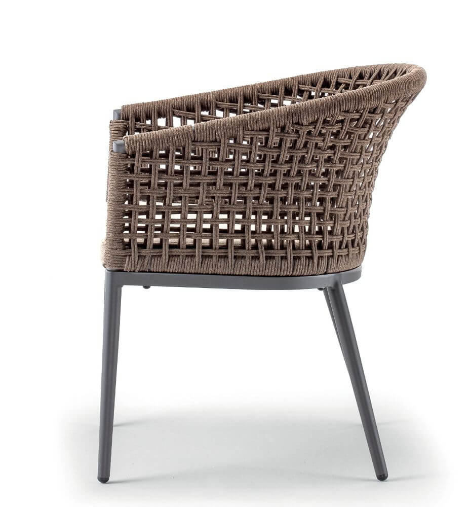Кресло Cuba сочетает в себе прочный алюминиевый каркас с порошковым покрытием и канатное плетение из полиэстера (Ø4 мм) спинки и подлокотников. Мягкая подушка на сиденье с олефиновым чехлом, устойчивым к пятнам и ультрафиолетовому излучению дополнит комфортный отдых. Это кресло идеально подходит для создания лаунж или обеденной зоны в саду или на террасе. Коллекция Cuba идеально подходит для тех, кто хочет произвести впечатление с помощью дизайнерской мебели в интерьере и на открытых площадках.