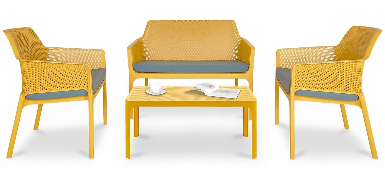 Net - удобный и романтический комплект из стеклопластика для использования на открытом воздухе. Четкие силуэты и тонкие профили отличает мебель этой коллекции. Диван Net Bench вместе с креслами Net Relax и журнальным столом Net Table дополняет Nardi Net Collection, обогащая её новой привлекательностью, перед которой невозможно устоять. Разработанный для домашних условий, но соответствующий требованиям сферы Contract, комплект Net - это отличный способ для обстановки даже самого изысканного открытого пространства, производя творческие комбинации со стилем и цветом.