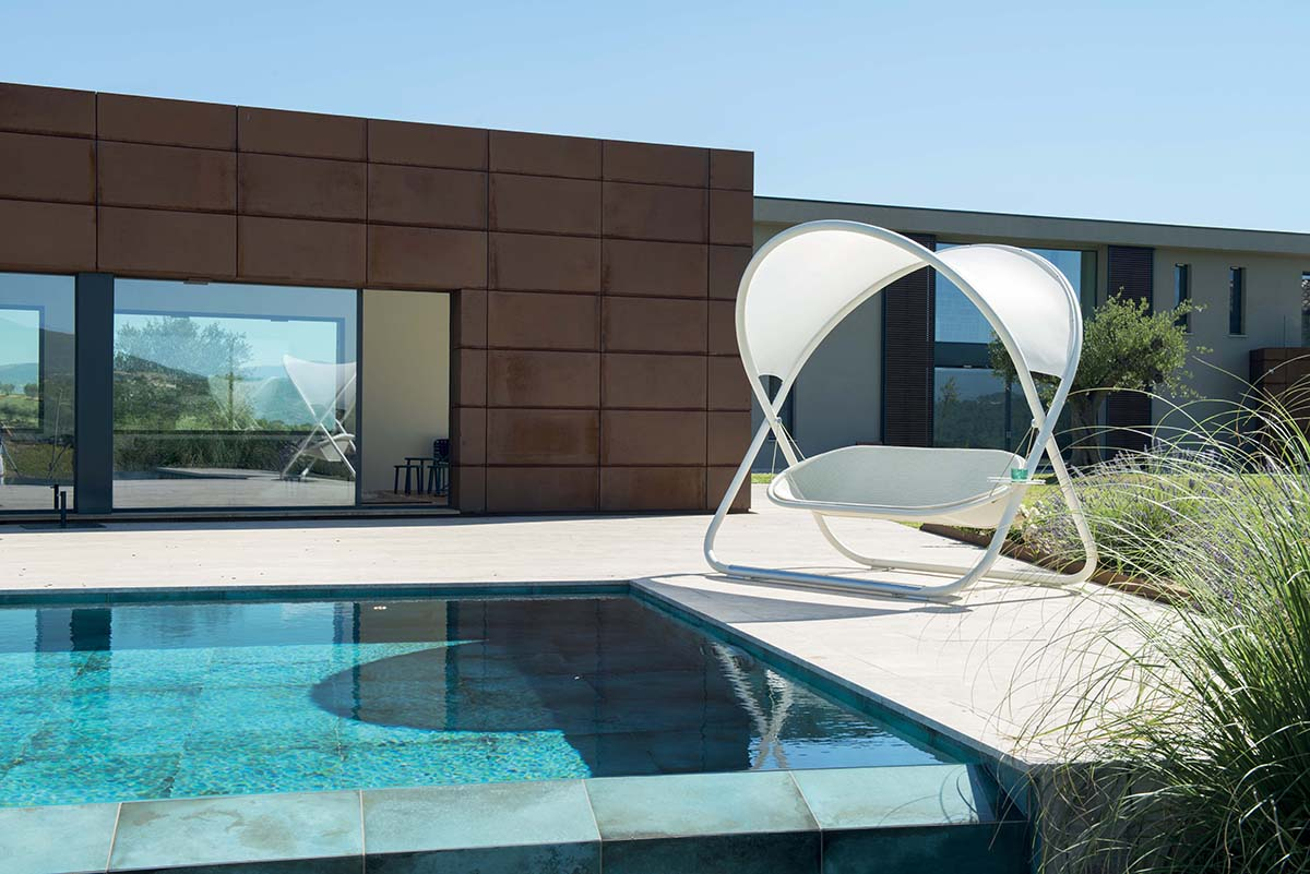 Столик к качелям Cool-là невозможно точно описать: частично кресло-качалка, частично кушетка, частично "островок безопасности"; безусловно, место для отдыха и убаюкивания Ваших мыслей. Внушительные размеры стальной конструкции делают Cool-là элементом с сильным визуальным воздействием и стильным дизайном.