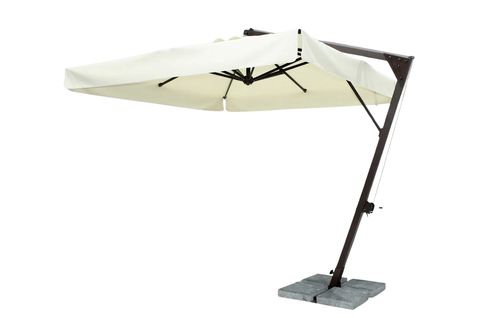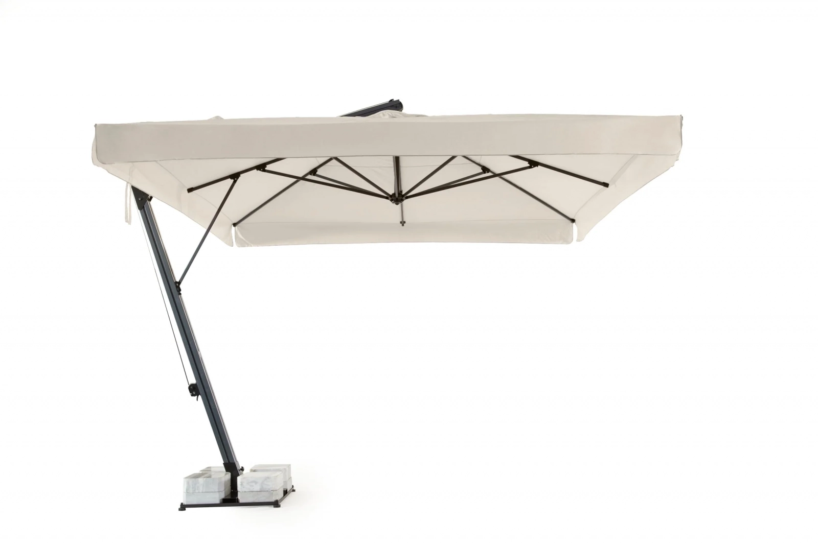 Наличие боковой опоры зонта гарантирует, что тень зонта используется более эффективно, чем с зонтами с центральной стойкой. Зонты Banana изготавливаются разных размеров и форм с учетом различных областей применения и размеров затеняемой площади. Зонты квадратной формы можно поставить в ряд, чтобы полностью закрыть зону затенения. Это предлагает вам очень гибкое и экономичное решение по сравнению с перголой или другими типами навесов.
