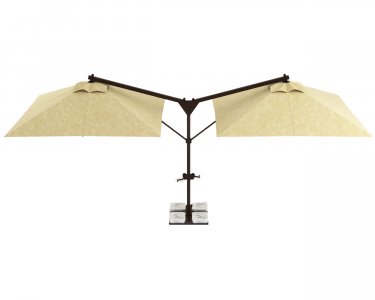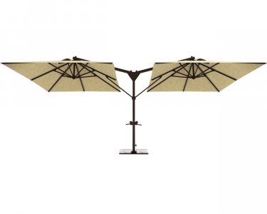 Double Banana - единая база, но больше затенения. Одна опора и два зонта, открывающиеся по бокам, обеспечивают затененную уютную атмосферу на любых открытых площадках. Алюминиевая конструкция, европейская ткань и утяжелительная база гарантируют простое использование.