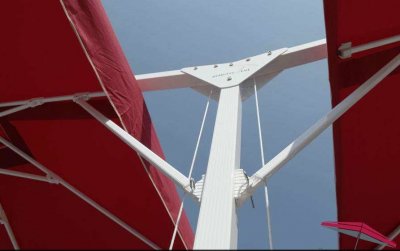 Благодаря утяжелительной базе обеспечивается достаточный баланс и давление. Зонты можно открывать независимо друг от друга благодаря двум лебедкам на средней стойке. С помощью этой системы с коленчатым валом и предохранительным замком зонты очень легко открывать и закрывать. Канаты обладают высокой устойчивостью к тяжелым условиям, используемым на палубах яхт для предотвращения разрыва.