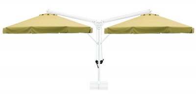 Double Banana - единая база, но больше затенения. Одна опора и два зонта, открывающиеся по бокам, обеспечивают затененную уютную атмосферу на любых открытых площадках. Алюминиевая конструкция, европейская ткань и утяжелительная база гарантируют простое использование.