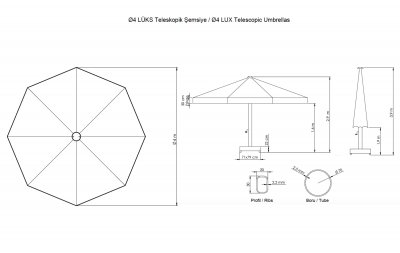Зонт профессиональный Ø4 м Lux Telescopic THEUMBRELA SEMSIYE EVI, Турция, Ø4000 мм