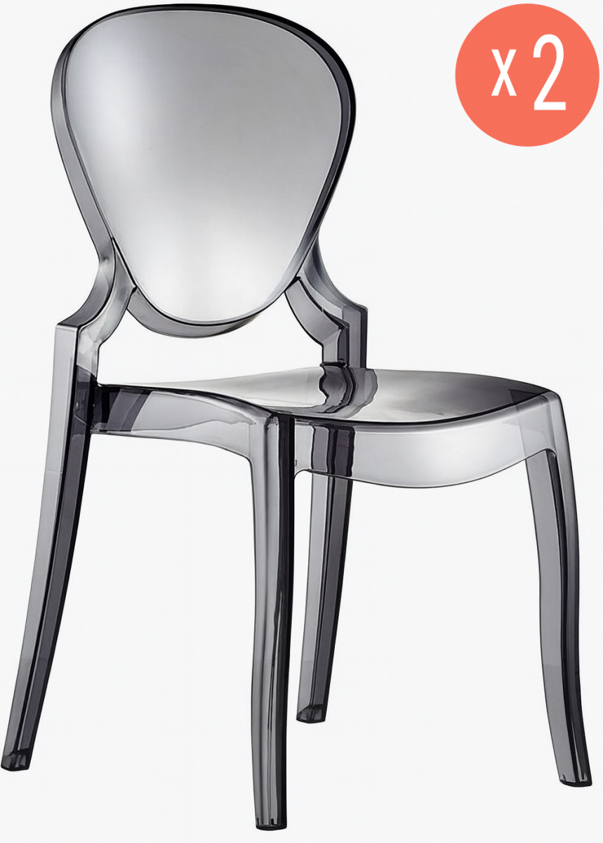 Комплект из 2-х стульев Queen, полностью выполненных из прозрачного поликарбоната, прочного материала, пригодного для использования в любых условиях.