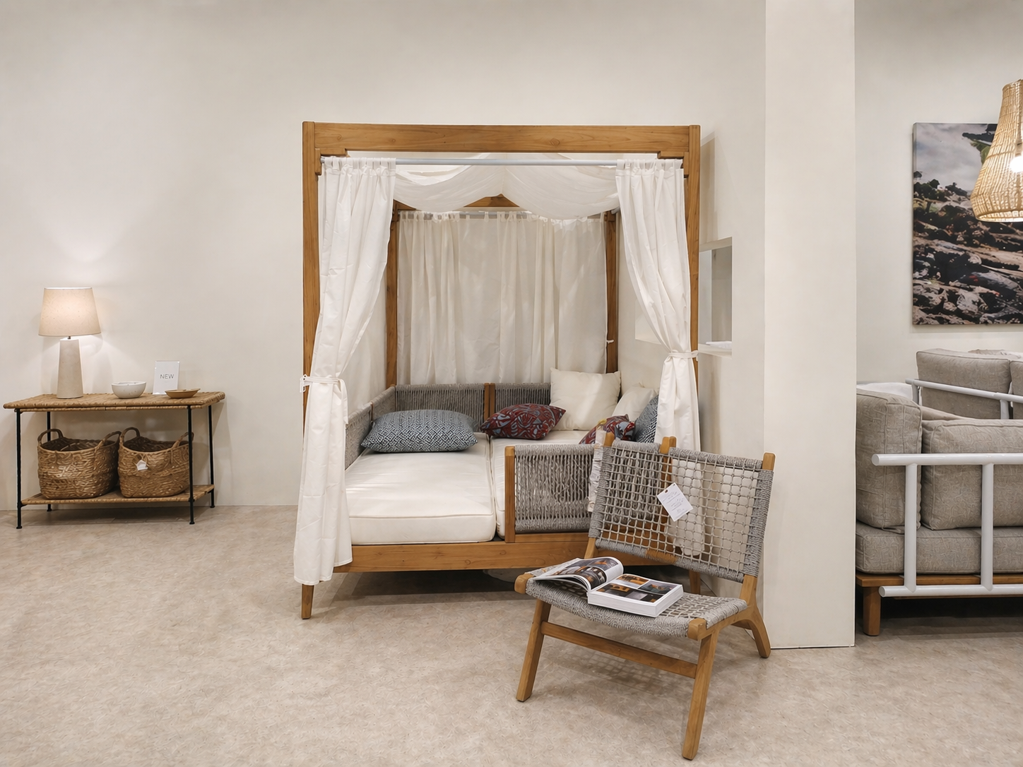 Стильный и комфортный шатер Zante с балдахином обеспечивает полное расслабление во время отдыха или принятия солнечных ванн, а шторы создают уединенную атмосферу.