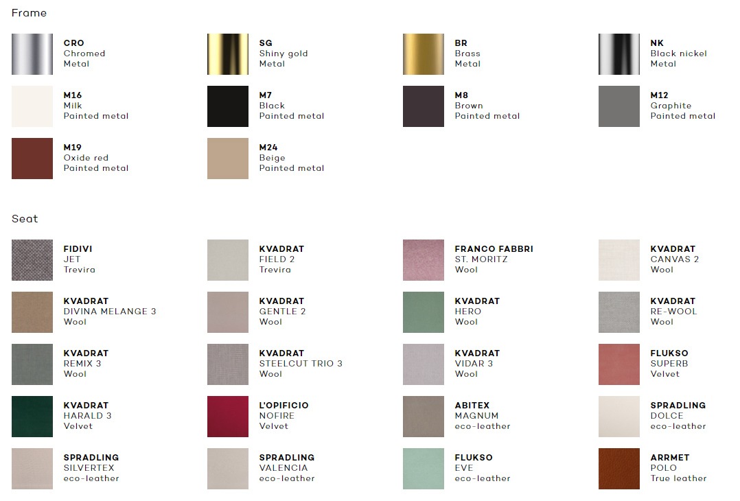 Цена на сайте указана за модель с отделкой каркаса SG и обивкой из материала Fidivi Jet. Цены на другие модели уточняйте у менеджеров.