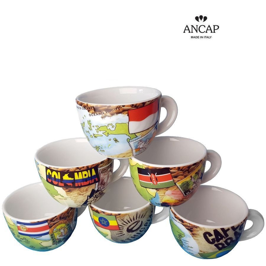 Погрузитесь в мир кофе с чашкой капучино Edex Mondo Caffe из ассортимента итальянской фабрики Ancap. В качестве дани уважения шести основным странам, выращивающим кофе, Вы получите классические кофейные пары для капучино Edex, но с 6 различными дизайнами кофе, подходящими для этих стран, выращивающих кофе.