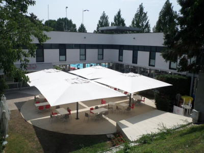 Профессиональный зонт Capri Dark разработан специально для затенения больших открытых пространств, при этом он сам занимает небольшую площадь. Повышенная прочность материалов конструкции и телескопическая система открытия-закрытия зонта, при использовании которой нет необходимости передвигать мебель под зонтом, позволяют использовать Capri Dark в уличных кафе и ресторанах.