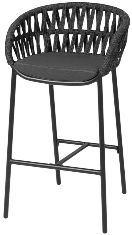 Барное кресло Tahiti выполнено из алюминия с плетением из полиолефинового каната. Высококачественные материалы позволяют использовать модель в помещении и на открытом воздухе. Мягкая подушка на сиденье из прочной быстросохнущей ткани, устойчивой к воздействию ультрафиолетовых лучей и плесени.