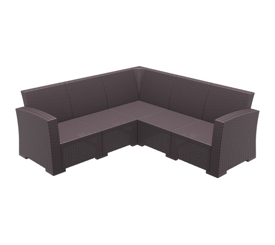 Пластиковый угловой плетеный диван Monaco Lounge изготовлен из прочного погодостойкого пластика, армированного стекловолокном. Пластиковые диваны серии Monaco Lounge с имитацией плетения натурального ротанга станут отличным выбором для обстановки лаунж-зон различных заведений. Благодаря использованию высококачественных материалов они долгое время не теряют своего привлекательного внешнего вида, даже несмотря на активную эксплуатацию. Благодаря отсутствию металлического каркаса и устойчивости к ультрафиолетовому воздействию плетеные диваны из пластика Monaco Lounge можно использовать в том числе и на открытых площадках.