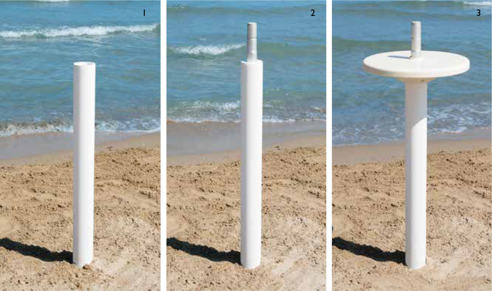 Вставьте опору 3 в песок на глубину около 50 см.