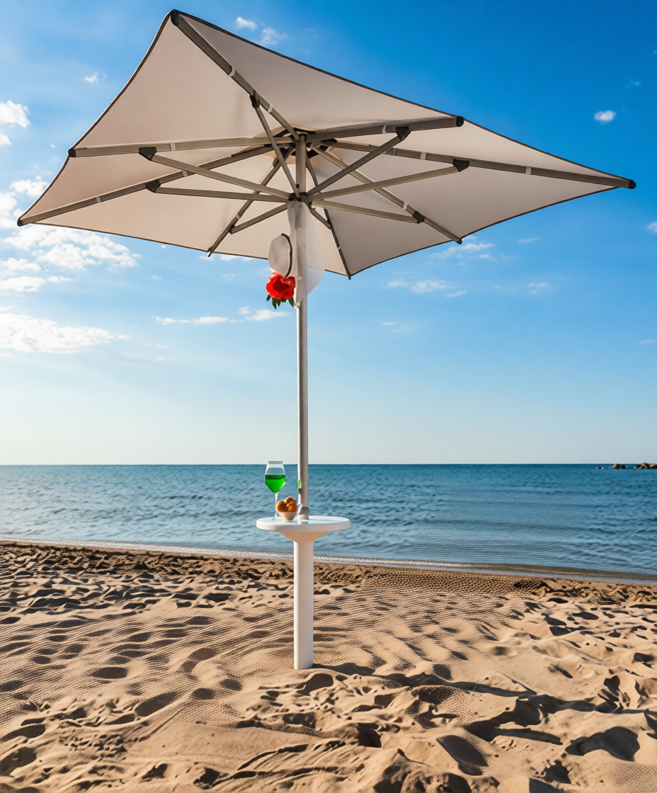 Столик для зонта устанавливается на опору. На него можно ставить стаканы с напитками, бутылки или графины с водой, положить телфон, очки, ключи или другие небольшие предметы.
