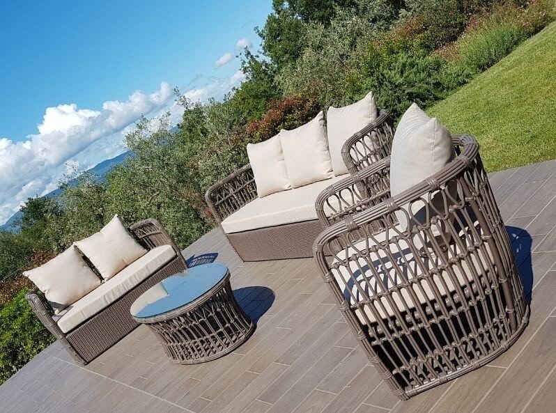 Чтобы создать уличный уголок мечты в вашем саду, важно подумать о качественной уличной мебели, изготовленной из высококачественных материалов. Союз эксклюзивного дизайна и использования инновационных материалов привел к созданию Lhiam, высококачественного лаунж комплекта на открытом воздухе, отличающегося конусообразным плетением и интригующими линиями. Созданный на алюминиевом каркасе с порошковым покрытием для наружного использования, уличная гостиная Lhiam сплетена с инновационным круглым волокном для наружного использования диаметром 1 см, способным воспроизводить и напоминать лучшие натуральные плетения из ротанга.