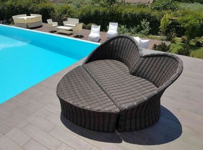 Устойчивый к любым погодным условиям, садовый диван Cupido оснащен съемными подушками и предлагает чрезвычайно удобное сиденье. Перемещение банкетки вперед превращает комплект в диван, на котором удобно сидеть, а при соединении двух предметов - в красивый шезлонг, на котором можно полежать, почитать книгу в саду или позагорать возле бассейна.