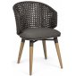 Сиденье и ножки выполнены из тика SVLK (легальное индонезийское дерево) с отделкой рустик. Каркас выполнен из алюминия с порошковой покраской (полиэстер), спинка и подлокотники оплетены полипропиленовым канатом, водоотталкивающим и устойчивым к ультрафиолету. Подушка на сиденье с наполнителем из быстросохнущей пены (от влажности) и съемным чехлом из ткани sunbrella (100% акрил).