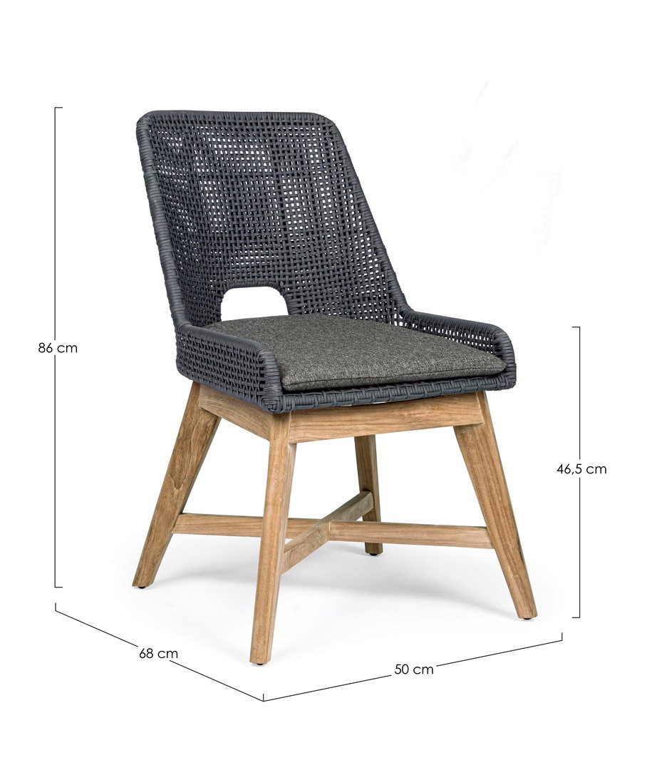 Плетеный стул Hesperia выполнен из переплетения канатов из олефина (100% полипропилен). Каркас выполнен из алюминия с порошковой покраской (полиэстер), разборные ножки - из тика SVLK (легальное индонезийское дерево), саморезы из оцинкованной стали. Подушка на сиденье со съемным чехлом из солнцезащитной олефиновой ткани (100% полипропилен).