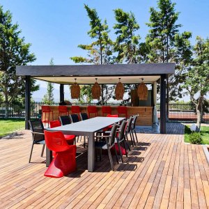 Используемая для покрытия ткань Batyline от компании Sergе Ferrari отличается повышенной стойкостью и светопереносимостью, что увеличивает продолжительность срока ее службы.