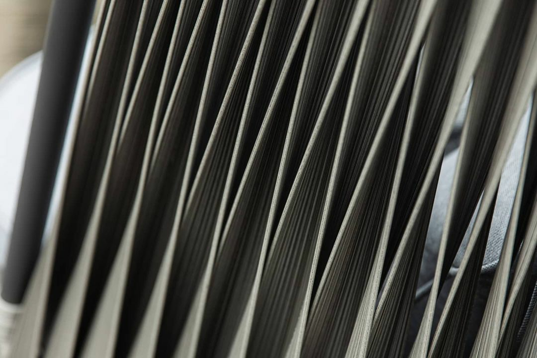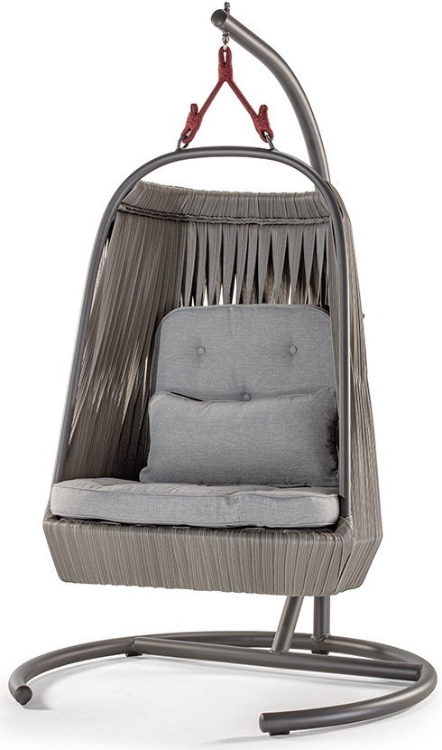 Подвесное кресло Wind сочетает в себе строгие линии лакированного алюминиевого каркаса и плетение из экоканата. Кресло обладает естественной легкостью и элегантностью. Дизайн плетения каркаса и прочность металлических ножек создают комбинацию, которая источает энергию. Подушки для сиденья и спинки, выполненные из устойчивого к пятнам и ультрафиолетовому излучению олефина, обеспечивают комфортный отдых. Наполнитель подушек - быстросохнущий вспененный материал. Подвесное кресло Wind успешно справляется с задачей, когда дело доходит до украшения дома или общественных мест. Оно замечательно впишется в интерьер комнаты, а также станет украшением любого открытого пространства.