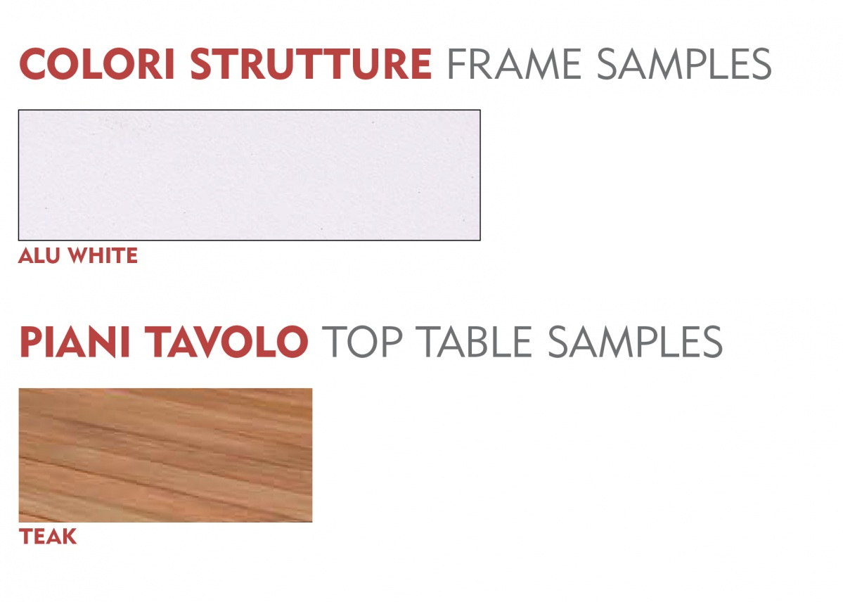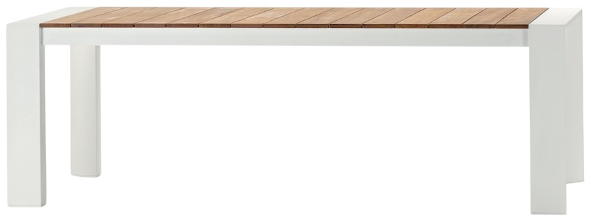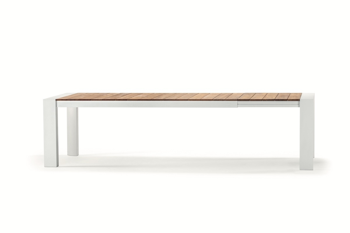 Top - это раздвижной стол с каркасом из алюминия, подходящий как для обстановки интерьеров, так и для садов, бассейнов, больших террас и любых других открытых пространств. Столешница Top выполнена из реек необработанного тика. Тиковая древесина устойчива к влаге и гниению и обладает эффектной фактурой. Прочная, износостойкая столешница прекрасно подойдет для использования в заведениях и на открытых площадках с высокой посещаемостью.