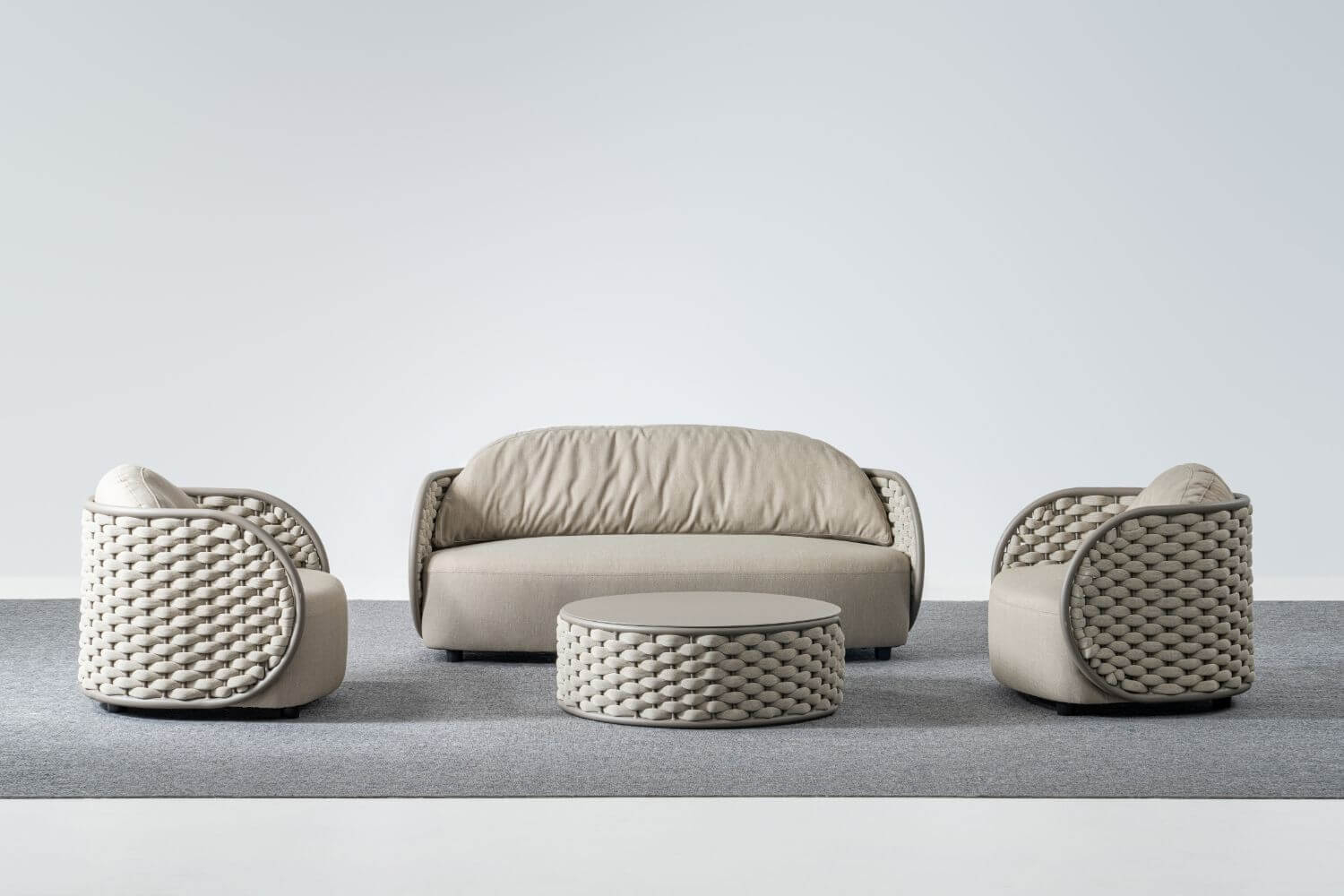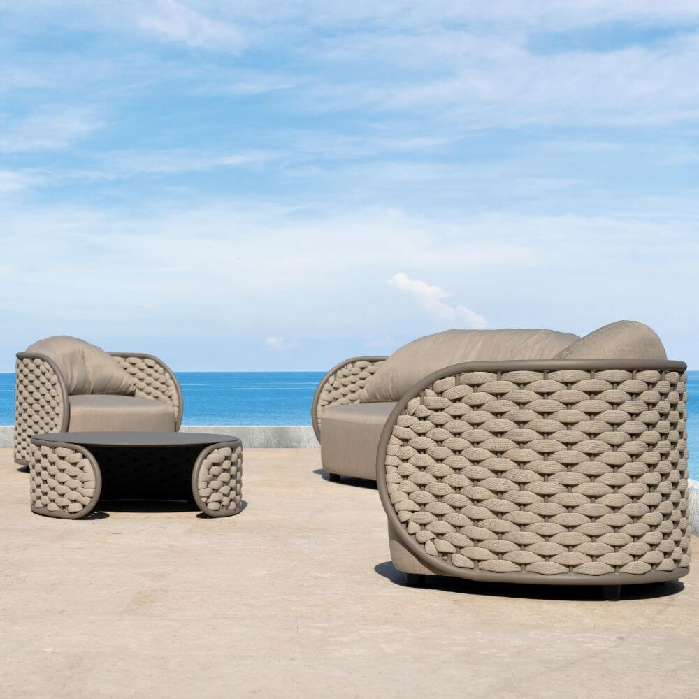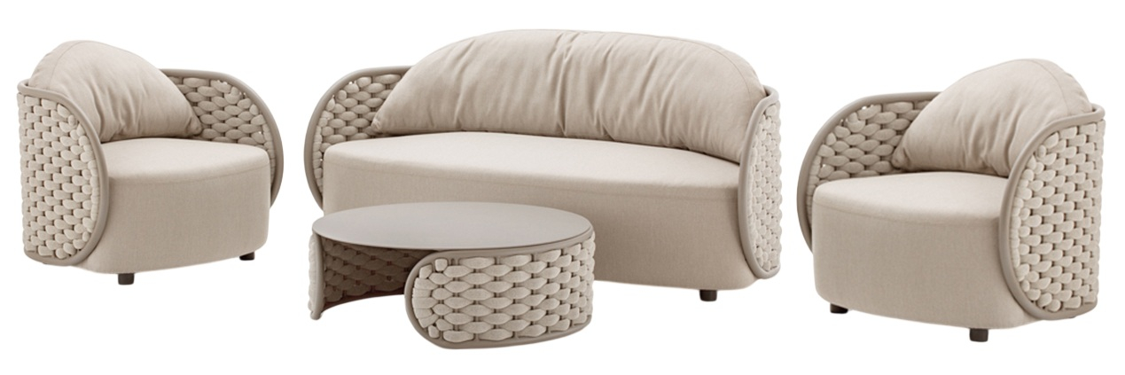 Комплект Mojo состоит из двухместного дивана, двух кресел и журнального столика. Устойчивый и надежный каркас кресел и дивана выполнен из алюминия и оплетен резиновым канатом с текстиленовой оплеткой. Подушки, выполненные из устойчивого к пятнам и ультрафиолетовому излучению олефина, обеспечивают комфортный отдых. Журнальный столик выполнен из алюминия. Стильный и удобный комплект можно разместить в зоне отдыха в помещении или на открытом воздухе.