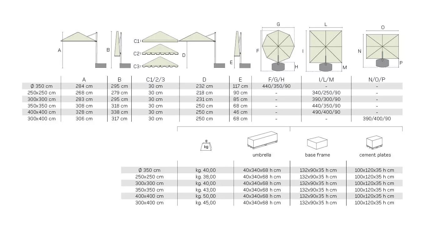 Зонт профессиональный 3х3 м Diomede Crema, Италия, 3000х3000 мм |