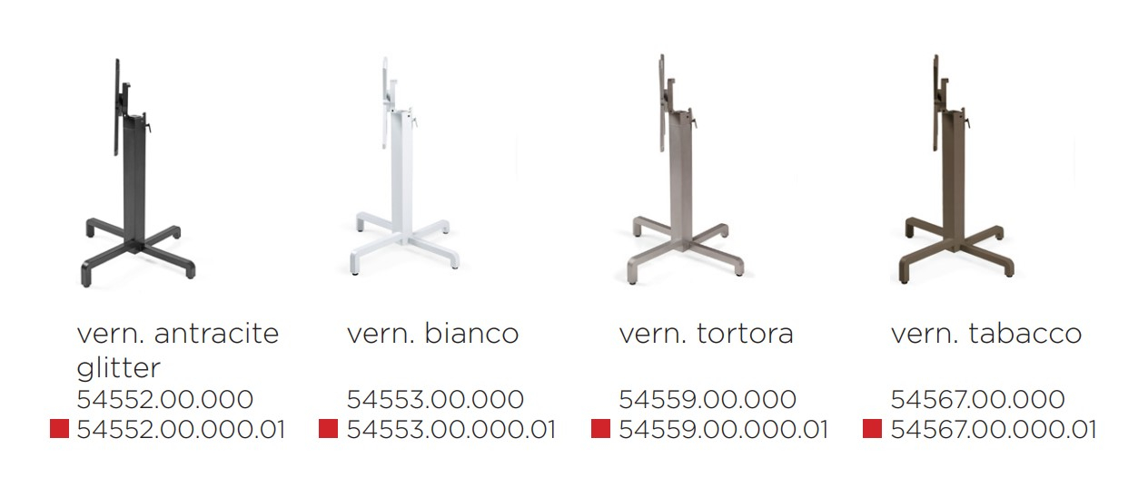 Подстолье Ibisco Special отличается специальной обработкой алюминия, из которого оно изготовлено. Такая особенность дает возможность использовать модель в местах с высоким содержанием соли. Изделие подходит для использования как на открытых пространствах, так и на закрытых площадках разнообразных назначений. Подстолье имеет возможность наклона, что позволят складывать столы в вертикальном положении и экономить место. Регулировка высоты ножек обеспечивает оптимальную устойчивость.
