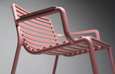 Свежая, легкая и эргономичная, Doga – это новая очаровательная коллекция уличной мебели: Кресла с подлокотниками и без них, кресло для отдыха и моноблочный журнальный столик из стеклопластика (полипропилен и стекловолокно). Вся коллекция была вдохновлена решетчатым дизайном, но Рафаэлло Галиотто, ее дизайнер, придал ей современный оттенок. Плавные линии спинки и сиденья стульев характеризуются игрой заполнений и пустот, отмеченных последовательностью горизонтальных планок.