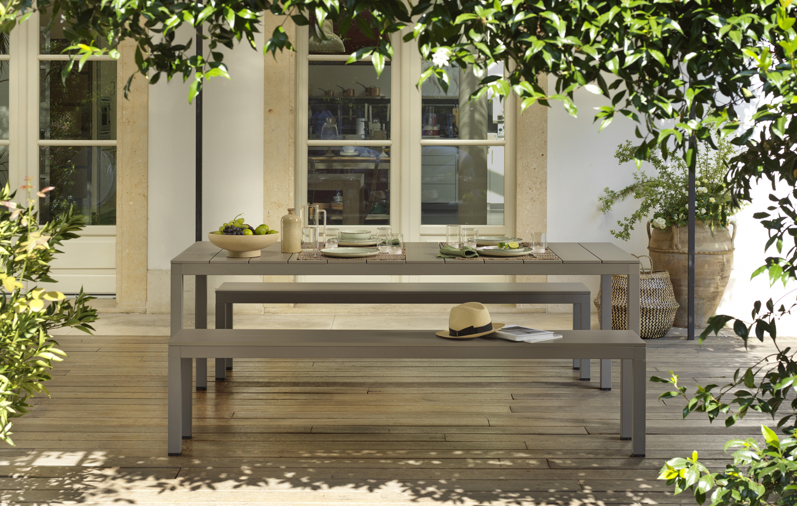 Rio Alu Fix – это стол с решетчатой столешницей из алюминия с текстурной имитацией рисунка дерева и алюминиевым окрашенным каркасом. Он отличается яркой индивидуальностью, строгим архитектурным подтекстом и фактурным внешним видом. Данная модель украсит террасы частных домов и пространства для проведения банкетов.