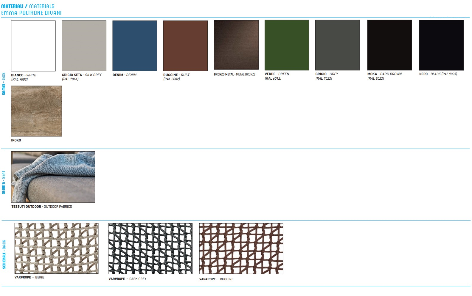 Элегантность, функциональность и универсальность являются отличительными чертами коллекции Emma, которая включает стулья, обеденные и барные кресла, и недавно пополнилась креслами бержер - изделием, в котором лучше всего выражено плетение спинки, а также креслами для отдыха, диванами, лежаками и журнальными столиками. Возможность создать лаунж зону всоответствии с вашими предпочтениями делает коллекцию универсальным предложением для любых современных пространств.