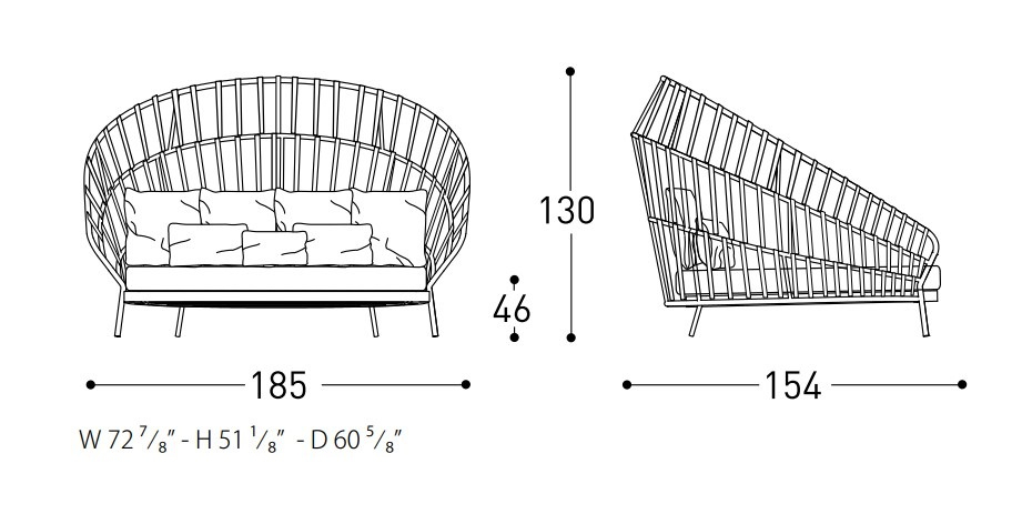 Модель из коллекции Emma Cross выделяется своей формой, явно напоминающей кокон благодаря комбинации спинки и подлокотников, отличающейся плетением ручной работы из акриловой тканевой ленты на алюминиевом каркасе с порошковым покрытием. В комплект входит подушка для сиденья с поролоновым наполнением Dryfeel ® , подходящая для использования на открытом воздухе, и 7 подушек для спинки.