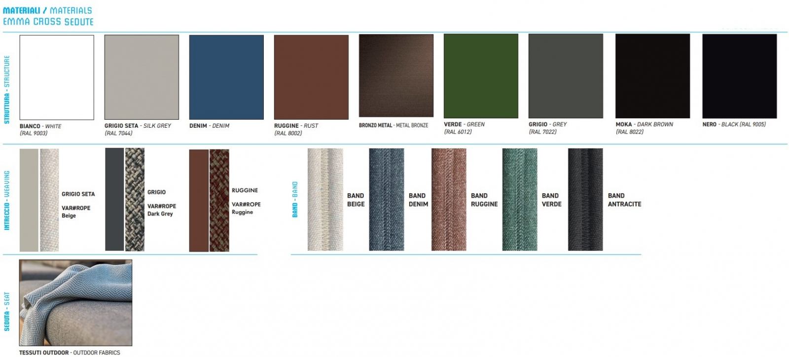 Emma Cross берет новое стилистическое направление, подбирая детали, которые отличают коллекцию Emma, и таким образом создавая "Fil Rouge" между коллекциями. Отличительной чертой Emma Cross является тканая лента с центральной детальной вышивкой, легкость самого переплетения позволяет почувствовать себя окутанным венчиком цветов или изящным воротничком рубашки. Выбранные цвета придают Emma Cross утонченный оттенок, где чистота на открытом воздухе оттеняется современной элегантностью.