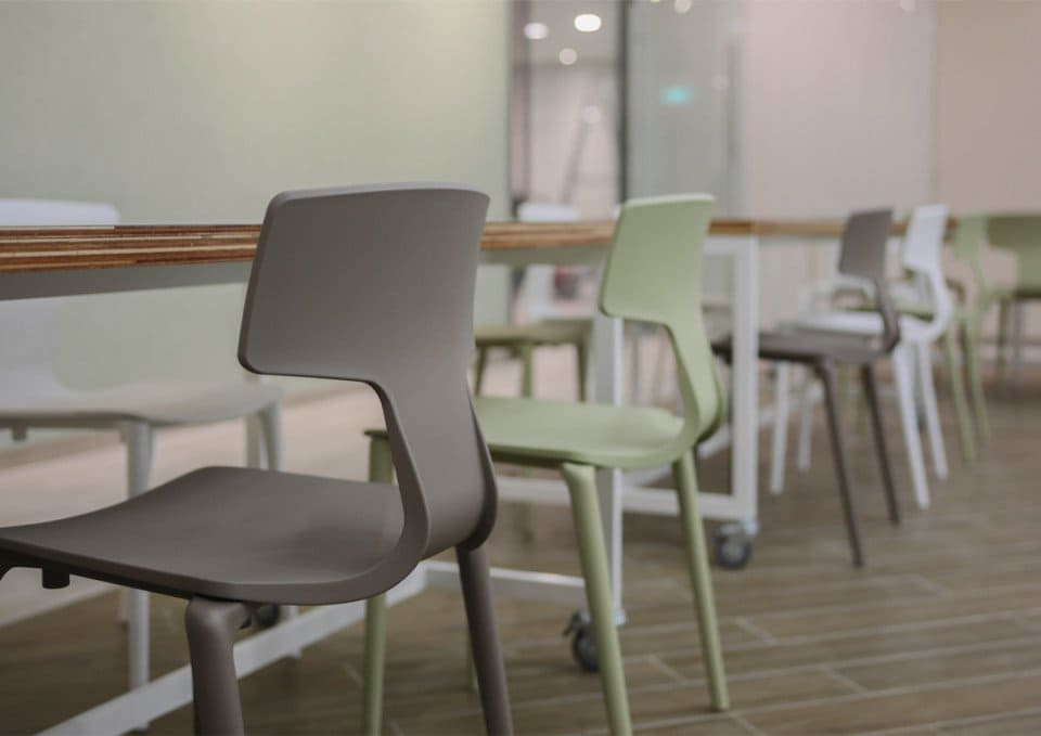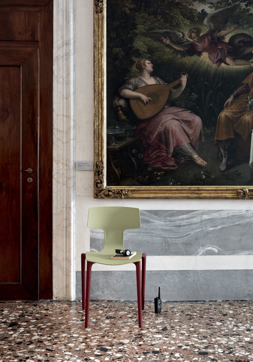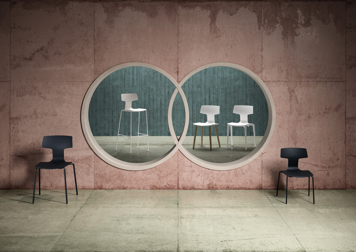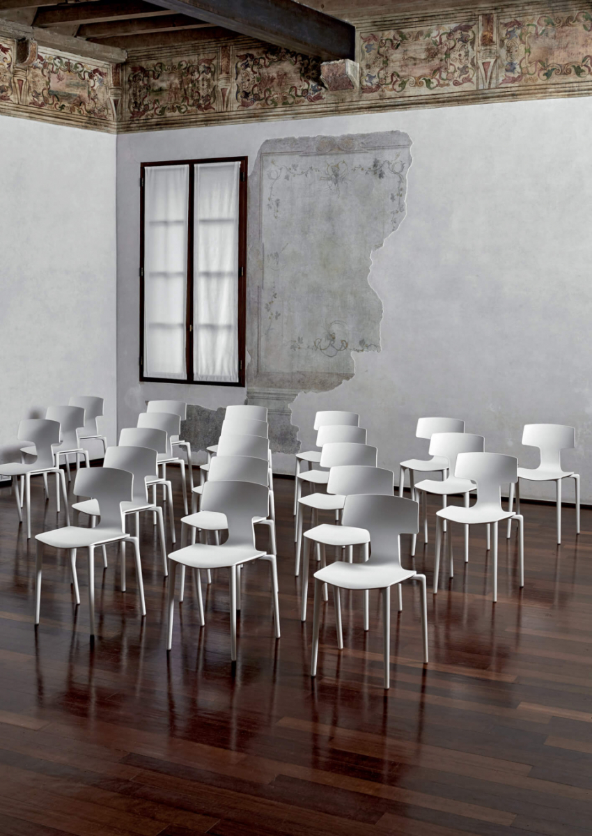 Благодаря минималистичному дизайну спинки, перетекающей в сиденье, стулья Split изящны и элегантны. Коллекция сидений Split, разработанная Франческо Меда, включает в себя несколько версий, различающихся по размеру и материалу, используемому для рамы, которая может быть выполнена из пластика, дерева или металла.