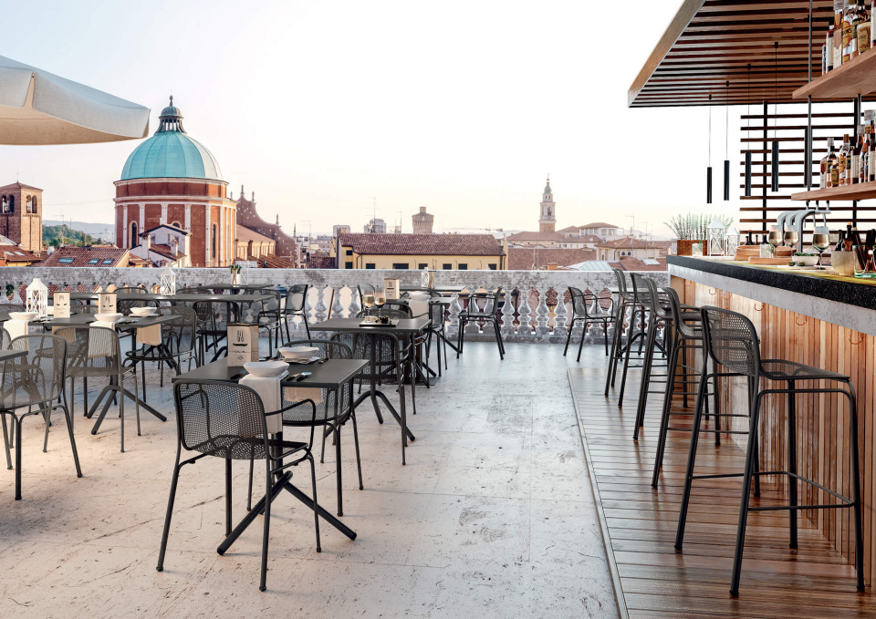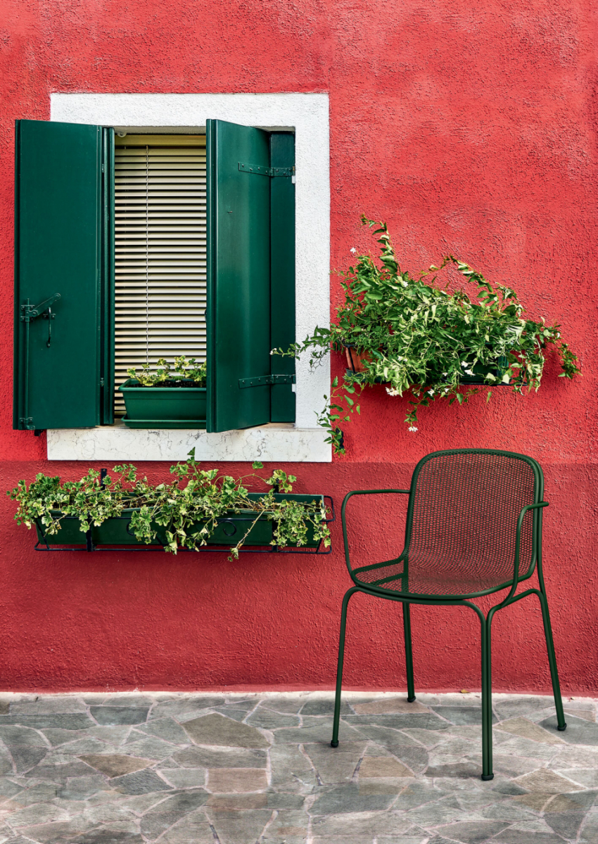 Цельнометаллическая конструкция коллекции Villa сочетает в себе классические линии и современный внешний вид. Ее дизайн вдохновлен уличными сиденьями из натурального тростника, которые обычно можно увидеть в парижских уличных кафе: легкие на вид, но чрезвычайно прочные. Инновация заключается в способе соединения деталей: тонкий стальной стержень элегантно изгибается, придавая раме изысканный вид, а проволочная сетка делает поверхность, соприкасающуюся с телом, удобной для сидения.