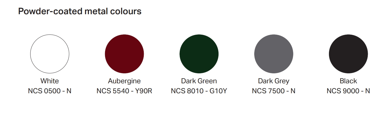 Варианты отделки: белый, баклажановый, темно-зеленый, темно-серый, черный.