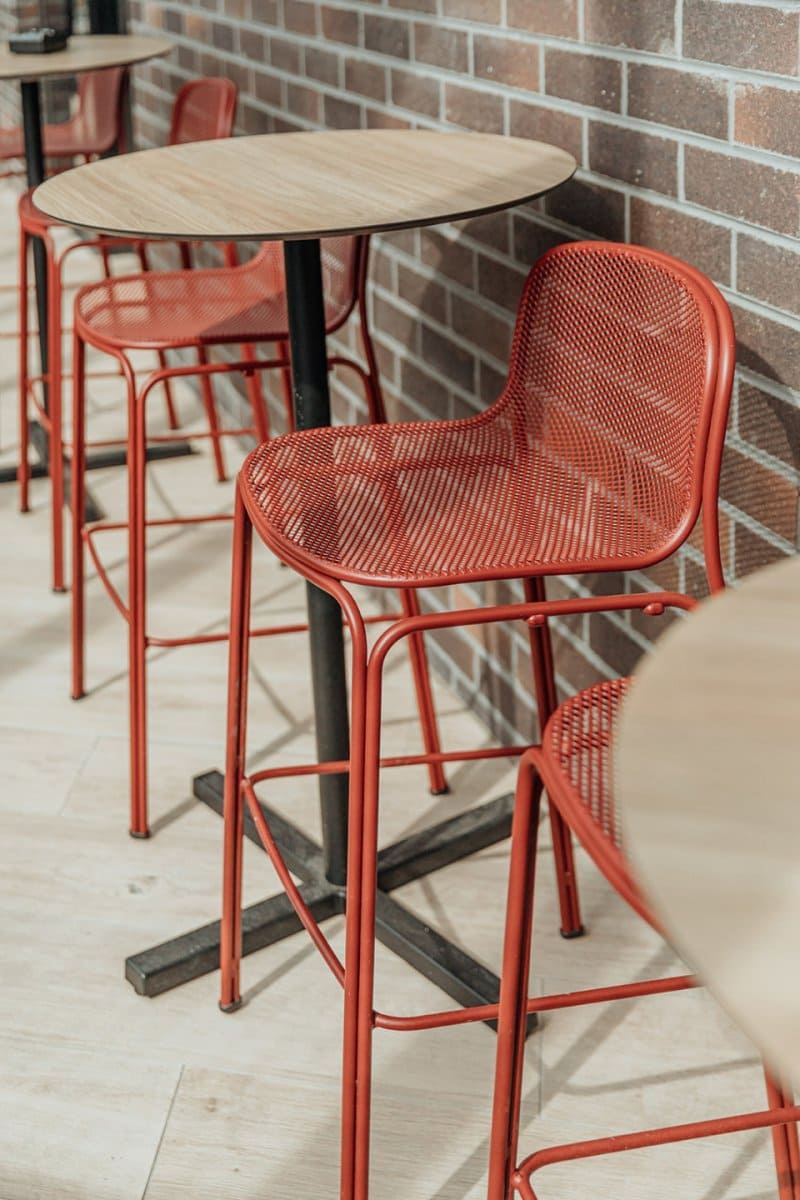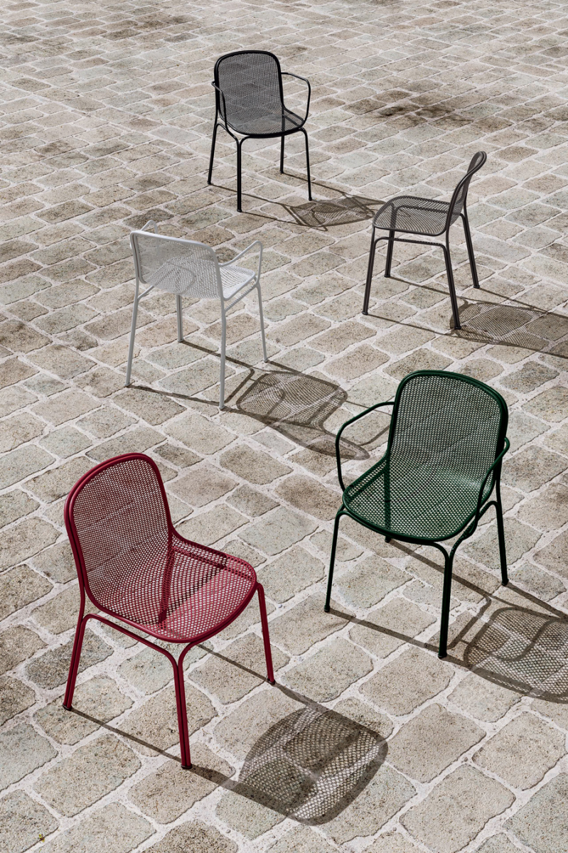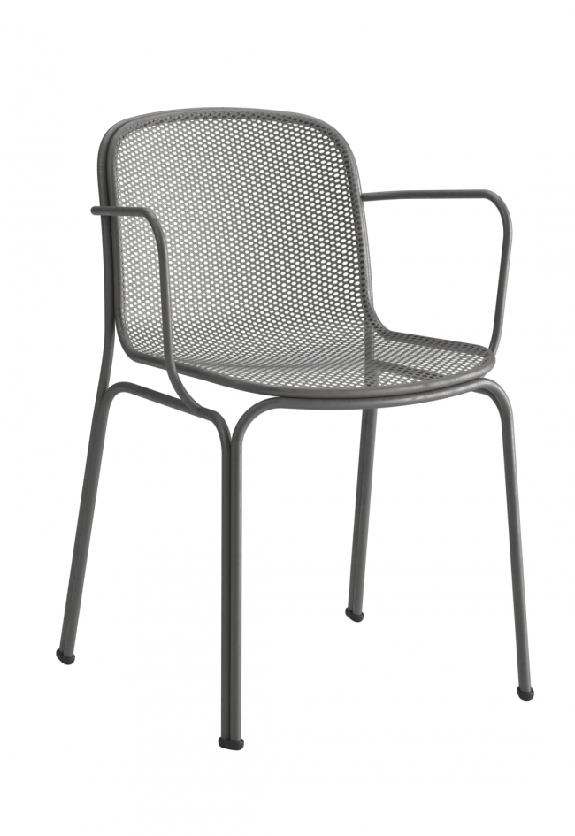 Тонкая игра изгибов и соединений позоляет слегка приподнять корпус над ножками, что делает стул чрезвычайно простым в обращении и штабелировании. Эти функции делают его подходящим для любой обстановки, особенно для пространств, которые часто необходимо переконфигурировать, чтобы приспособиться к меняющимся требованиям или проблемам, связанным с погодой.