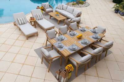 Rimini - это современная садовая коллекция из АКАЦИИ, выполненная в комбинации натурального веревочного плетения роуп, акации и бежевых подушек. Цвет натуральной твердой древесины представляет собой натуральный цвет с мелкой текстурой, придающий древесине приятный теплый вид. Rimini - это стиль и элегантность на Вашей веранде.