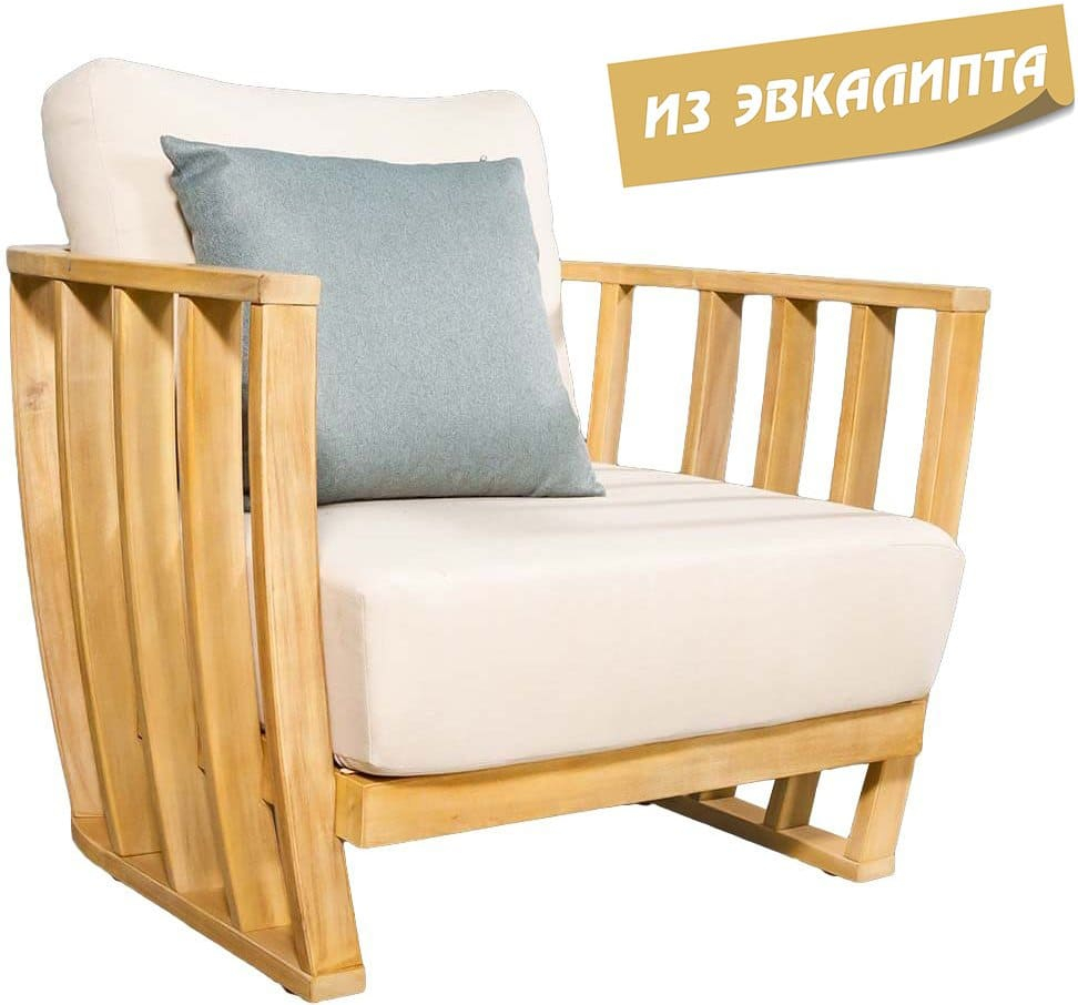 Изготовленное из высококачественного ЭВКАЛИПТА, кресло Woodland прочное и долговечное, а толстые подушки из олефина сохранят свою форму и не испортятся со временем. Древесина, одобренная FSC, обладает естественной водонепроницаемостью, поэтому вы можете хранить изделие на открытом воздухе круглый год. Цвет натуральной твердой древесины представляет собой натуральный цвет с мелкой текстурой, придающий древесине приятный теплый вид.
