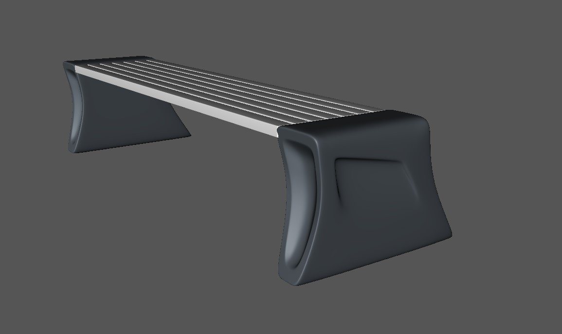 Лавочка стилистической линии Космос. Боковины сделаны из архитектурного многокомпонентного материала (прочность материала составляет не менее 75 % от нормативной прочности бетона марки М 450).