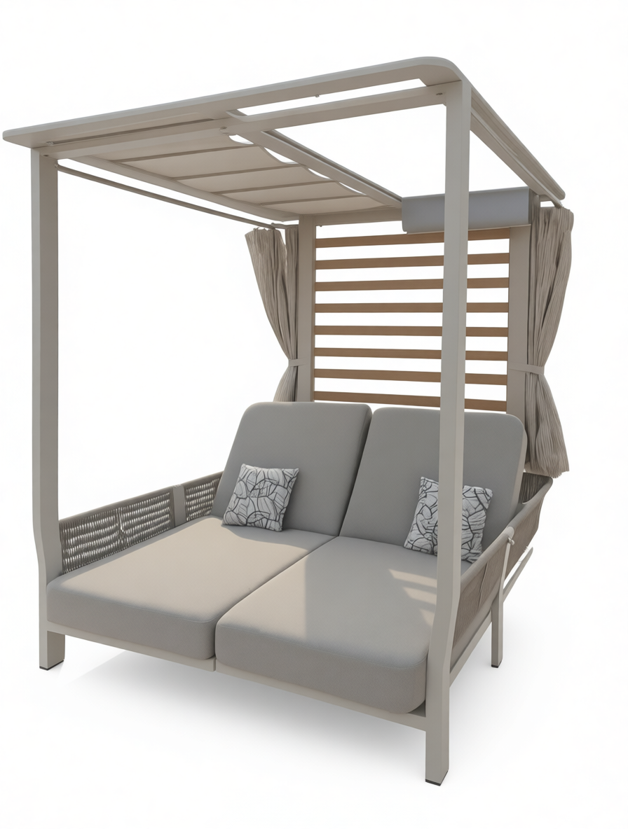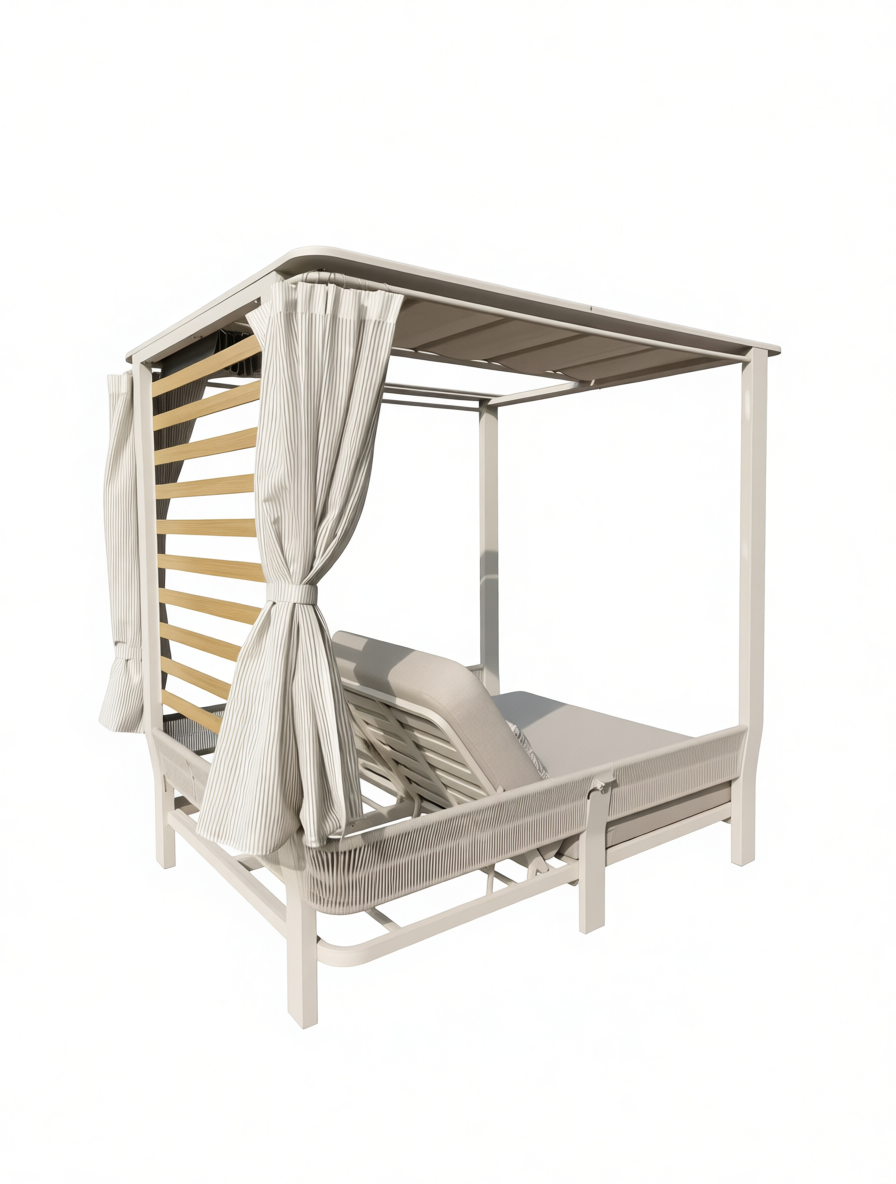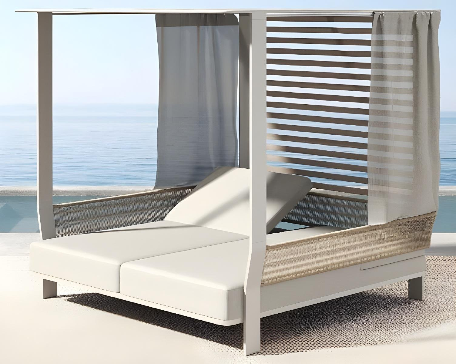 Применение специально разработанных материалов позволяет использовать лежак на открытом воздухе в полной безопасности, обеспечивая максимальную защиту от атмосферных воздействий без ущерба для эстетики и комфорта.