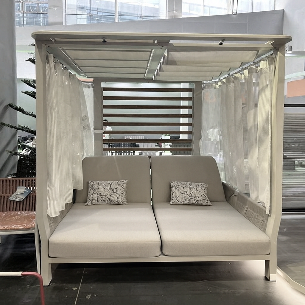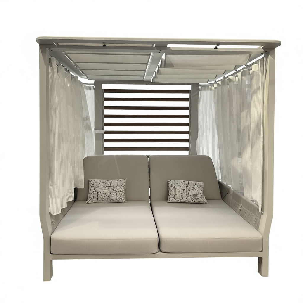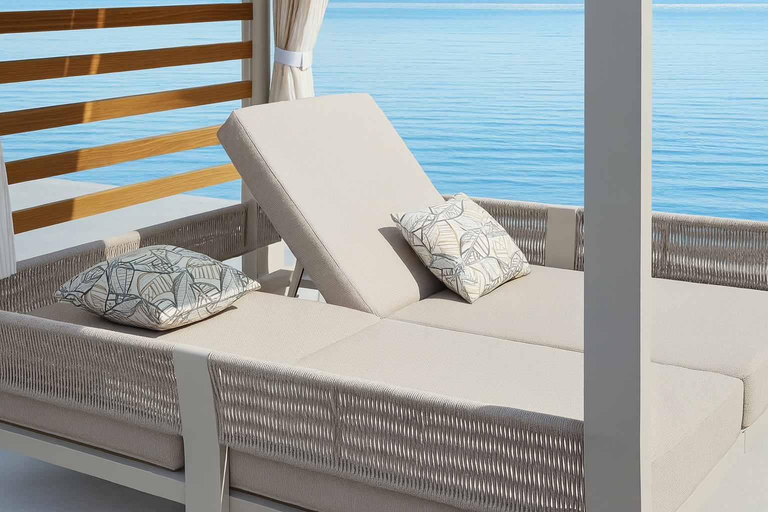 Применение специально разработанных материалов позволяет использовать лежак на открытом воздухе в полной безопасности, обеспечивая максимальную защиту от атмосферных воздействий без ущерба для эстетики и комфорта.