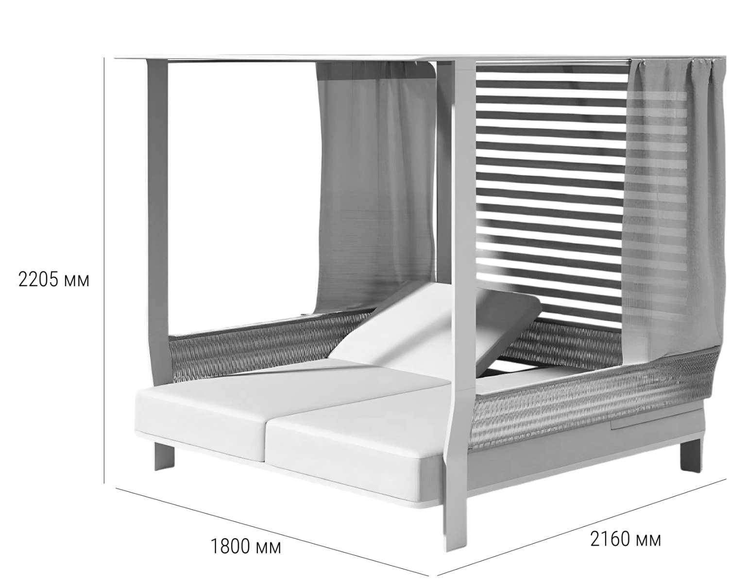 Двухместный лежак Borromeo выделяется своей простотой и способностью улучшать пространство на свежем воздухе. Алюминиевая конструкция с порошковым покрытием, обивка из олефина для двойного сиденья, которое позволяет двум людям удобно лежать рядом друг с другом, чтобы загорать вдвоем! Идеальное сочетание материалов: тепло, исходящее от роупа с одной стороны, и прочность алюминия в конструкции с другой. Лежак Borromeo - это удачное дополнение к Вашему открытому пространству! Он отлично подходит для летних дней, для полуденного отдыха в тени и прохладе, для хорошего самочувствия и веселья с близкими, ведь с нем каждая деталь посвящена удовольствию.
